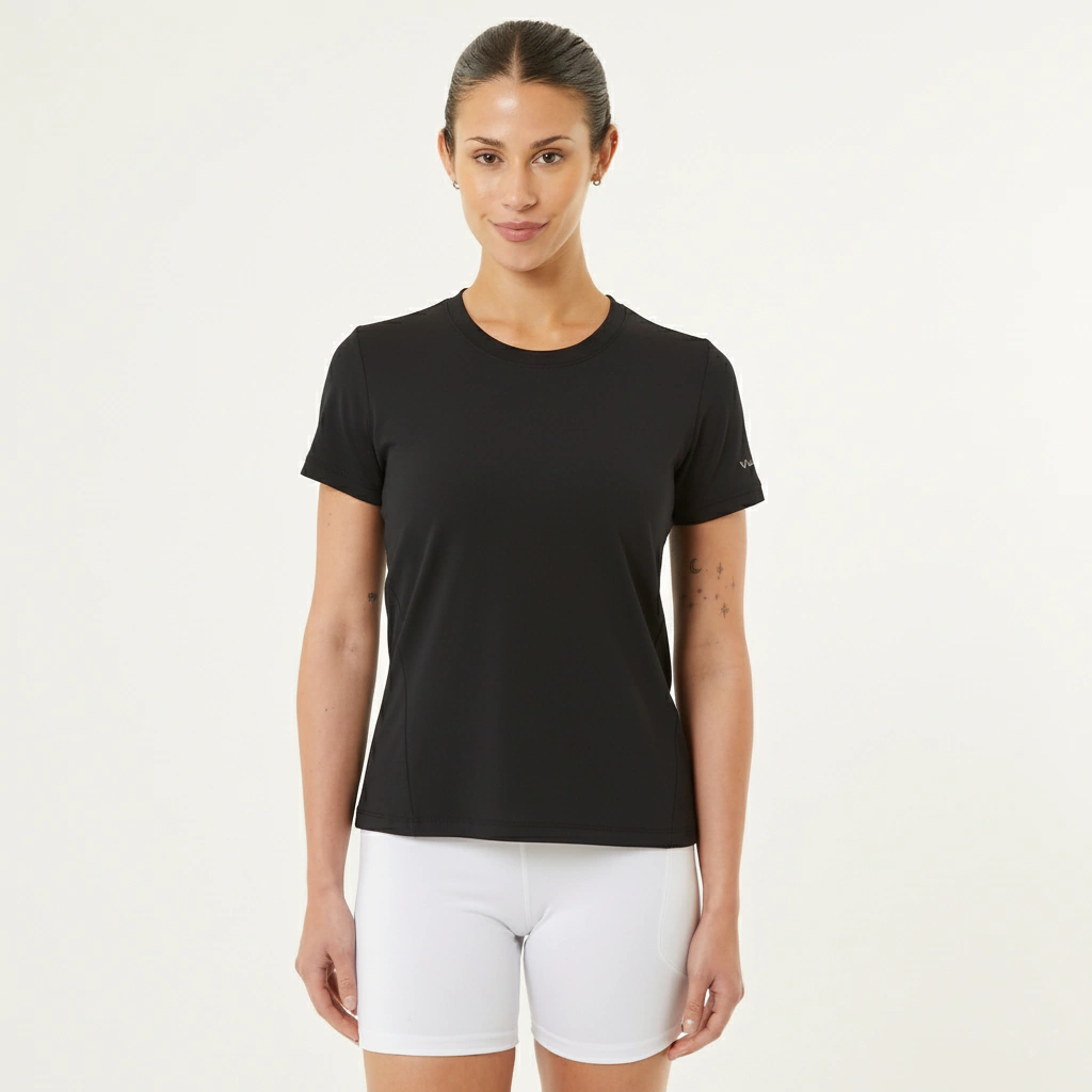 Remera manga corta, confeccionada en microfibra con lycra liviana, un textil de alta calidad que se adapta al cuerpo con suavidad, brindando frescura y libertad de movimiento. Contiene un cuello redondo clásico y recortes laterales. En su manga izquierda se destaca la aplicacion de marca con un vinilo a contratono